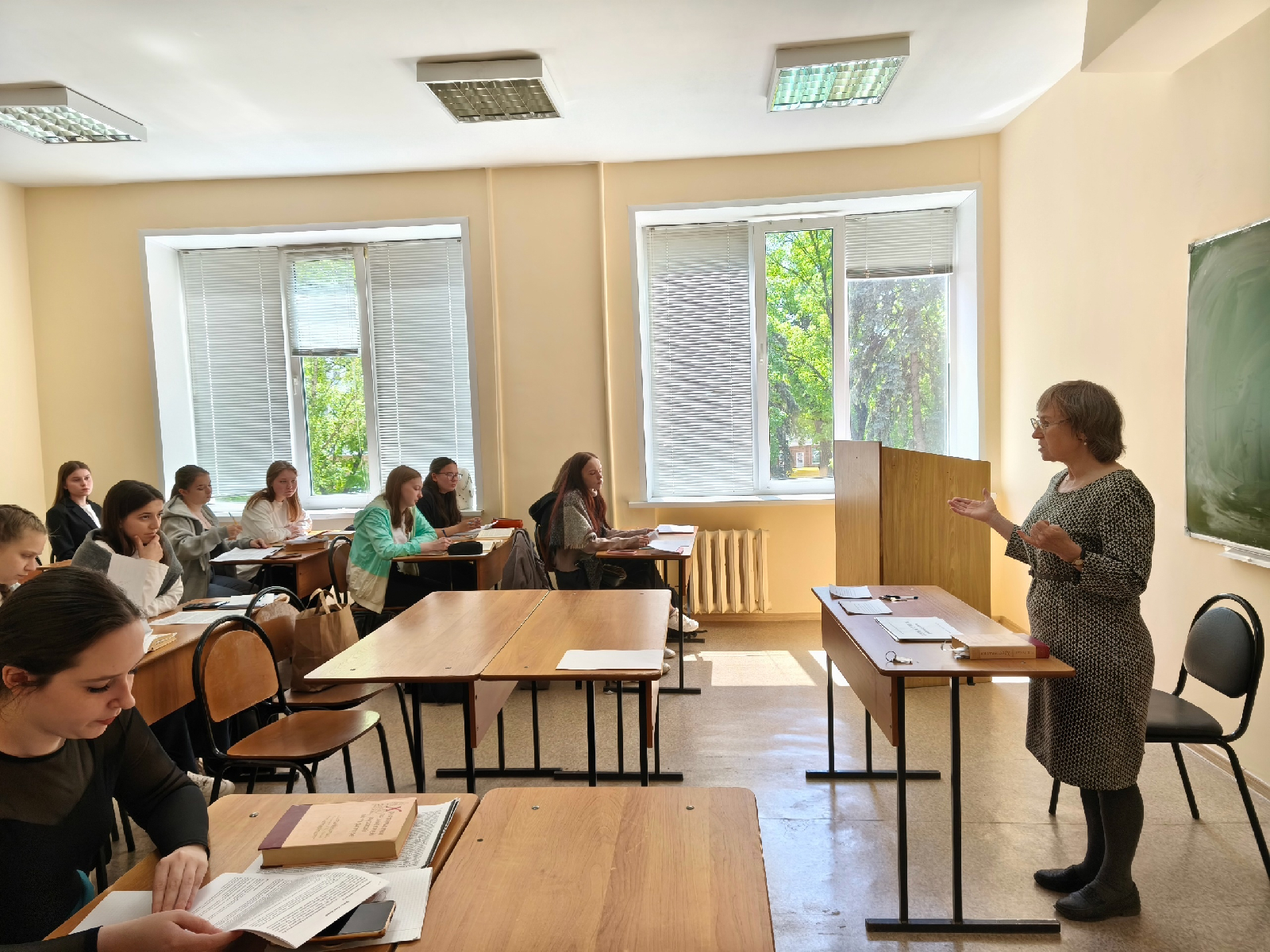 Пензенский государственный университет ежегодно проводит акцию «Стань студентом на один день», цель которой – помочь будущим абитуриентам осуществить выбор специальности для обучения в вузе. 16 мая 2025 г. старшеклассники образовательных учреждений г. Пензы: МБОУ МГ № 4 «Ступени», МБОУ МГ № 44, МБОУ СОШ № 77 посетили практическое занятие по дисциплине «Древнерусская литература» (преподаватель – старший преподаватель кафедры «Литература и методика преподавания литературы И. С. Ключарева). Учащиеся с интересом слушали материал о традициях и новаторстве повести XVII века, продемонстрировали школьные знания о произведениях данного периода. «Повесть о Савве Грудцыне» и «Повесть о Фроле Скобееве» вызвали у старшеклассников неподдельный интерес и желание прочитать и исследовать эти памятники литературы Древней Руси.