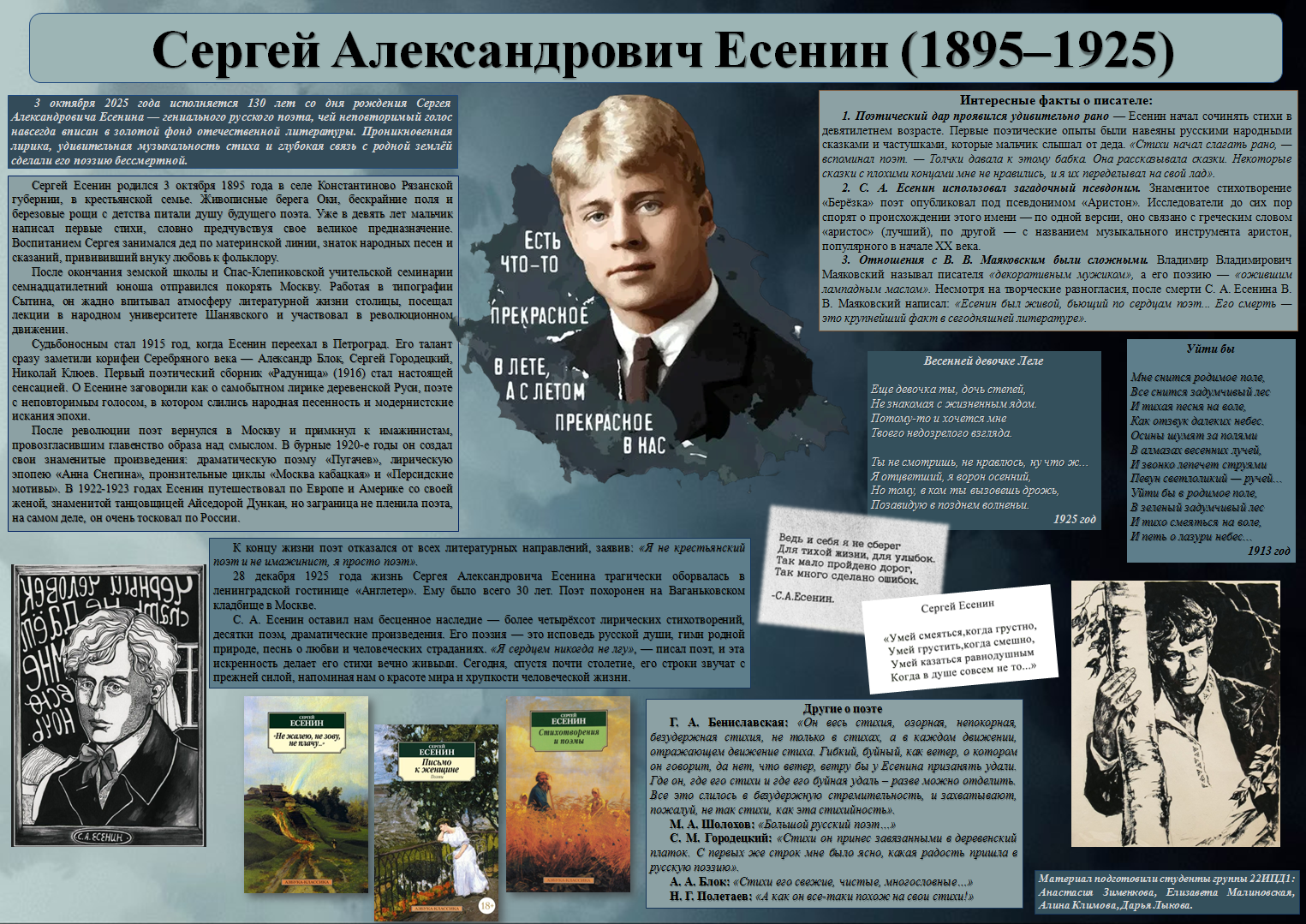 Студенты группы 22ИПД1 выпустили литературную газету, посвященную 130-летию со дня рождения С. Есенина