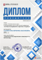 22.10.2025 14:24 Студентка гр. 24ИПД1 Вероника Саламатина стала победителем конкурса научно-исследовательских работ в секции "Филологические науки"